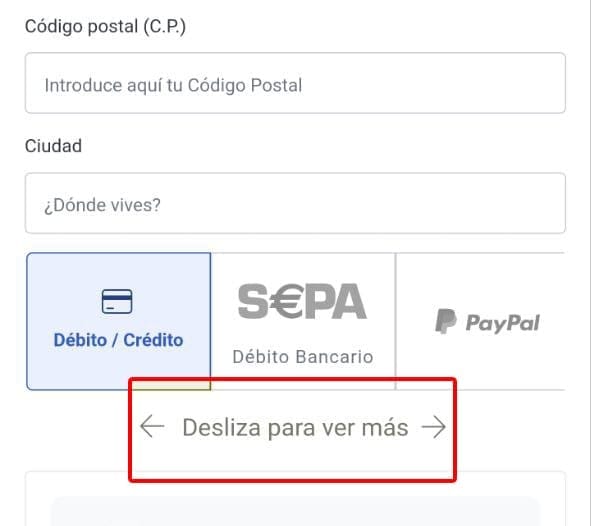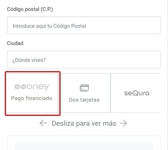 Para saber cómo seleccionar la opción del pago a plazos, fíjate en la imagen de abajo. Seguramente tengas que deslizar donde se indica: